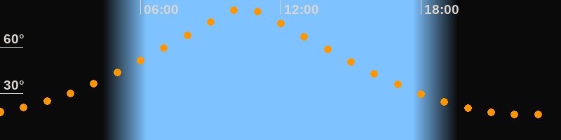 | Höchster Stand (Kulmination) | 10:26 Uhr (h = 85,1°) |