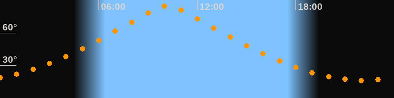 | Höchster Stand (Kulmination) | 10:11 Uhr (h = 85,1°) |