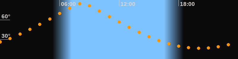 | Höchster Stand (Kulmination) | 08:13 Uhr (h = 85,1°) |