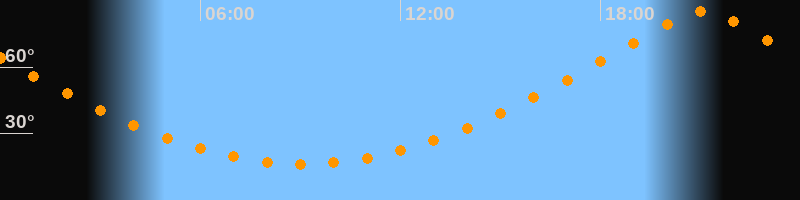 | Höchster Stand (Kulmination) | 21:04 Uhr (h = 85,1°) |