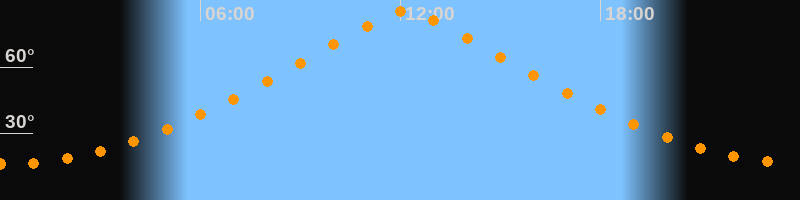| Höchster Stand (Kulmination) | 12:09 Uhr (h = 85,1°) |