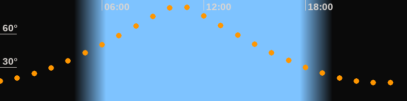 | Höchster Stand (Kulmination) | 10:31 Uhr (h = 85,1°) |