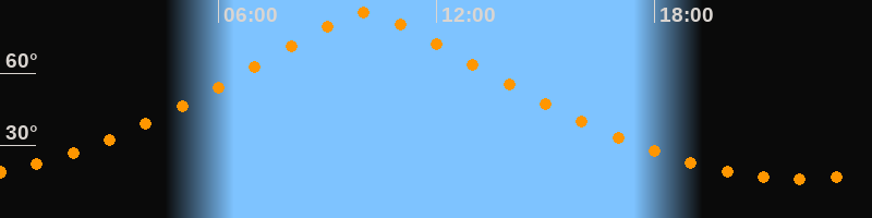 | Höchster Stand (Kulmination) | 10:04 Uhr (h = 85,1°) |
