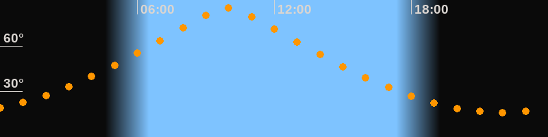 | Höchster Stand (Kulmination) | 09:56 Uhr (h = 85,1°) |