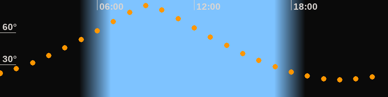 | Höchster Stand (Kulmination) | 09:09 Uhr (h = 85,1°) |