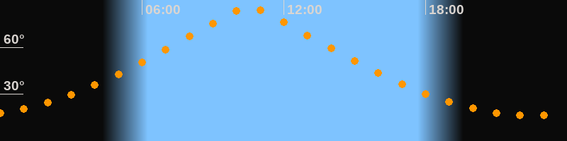 | Höchster Stand (Kulmination) | 10:32 Uhr (h = 85,1°) |