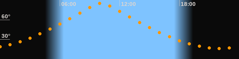 | Höchster Stand (Kulmination) | 10:09 Uhr (h = 85,1°) |