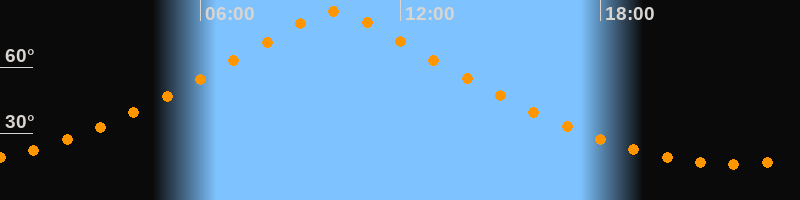 | Höchster Stand (Kulmination) | 10:01 Uhr (h = 85,1°) |