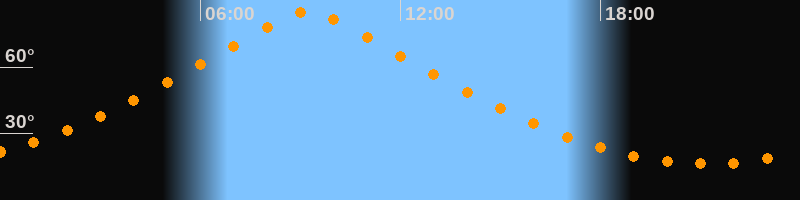 | Höchster Stand (Kulmination) | 09:13 Uhr (h = 85,1°) |