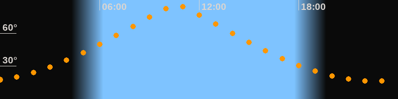 | Höchster Stand (Kulmination) | 10:37 Uhr (h = 85,1°) |