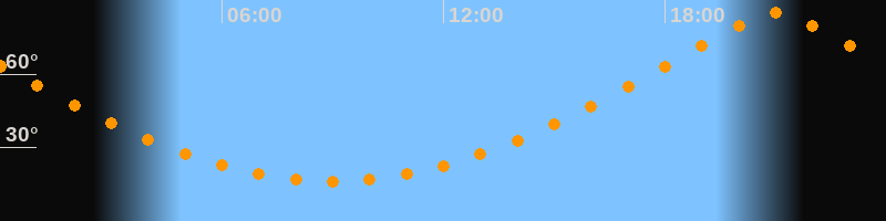| Höchster Stand (Kulmination) | 20:59 Uhr (h = 85,1°) |