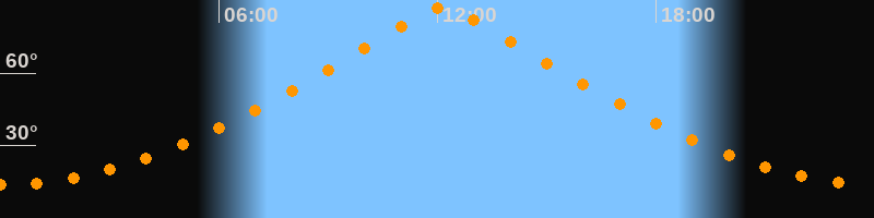 | Höchster Stand (Kulmination) | 12:08 Uhr (h = 87,4°) |
