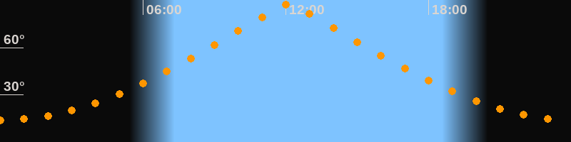 | Höchster Stand (Kulmination) | 12:06 Uhr (h = 87,4°) |