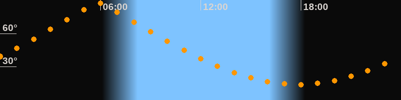 | Höchster Stand (Kulmination) | 05:52 Uhr (h = 87,4°) |