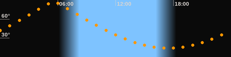 | Höchster Stand (Kulmination) | 05:32 Uhr (h = 87,4°) |