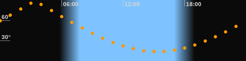 | Höchster Stand (Kulmination) | 03:22 Uhr (h = 87,4°) |