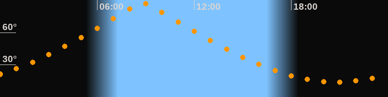| Höchster Stand (Kulmination) | 08:50 Uhr (h = 87,4°) |
