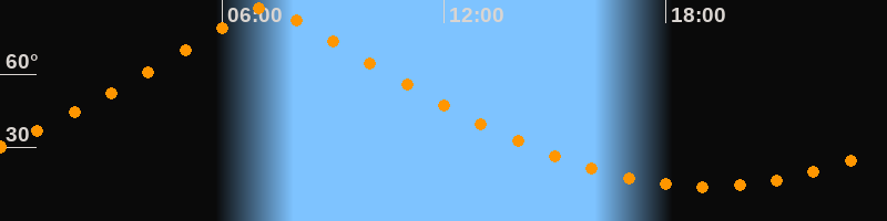 | Höchster Stand (Kulmination) | 07:11 Uhr (h = 87,4°) |