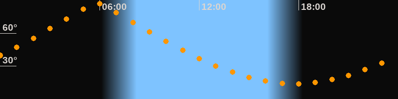 | Höchster Stand (Kulmination) | 05:49 Uhr (h = 87,4°) |