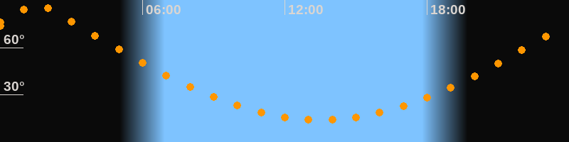 | Höchster Stand (Kulmination) | 01:33 Uhr (h = 87,4°) |