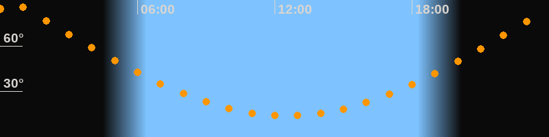 | Höchster Stand (Kulmination) | 00:30 Uhr (h = 87,4°) |