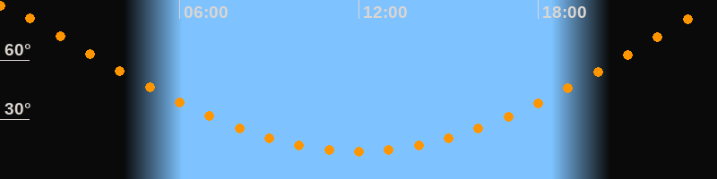 | Höchster Stand (Kulmination) | 23:59 Uhr (h = 87,4°) |
