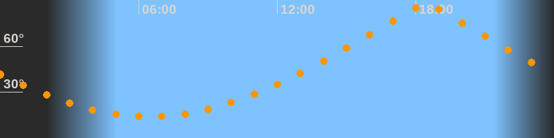 | Höchster Stand (Kulmination) | 18:26 Uhr (h = 87,4°) |