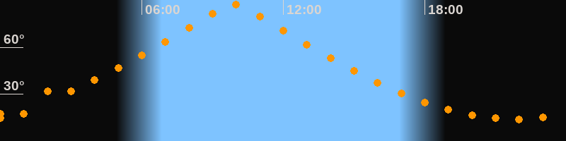 | Höchster Stand (Kulmination) | 09:53 Uhr (h = 87,4°) |