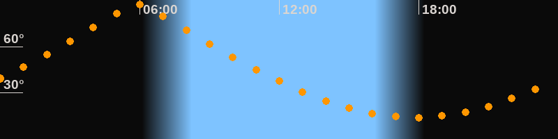 | Höchster Stand (Kulmination) | 05:54 Uhr (h = 87,4°) |