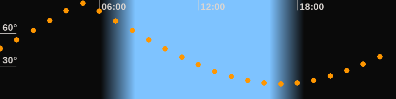 | Höchster Stand (Kulmination) | 04:59 Uhr (h = 87,4°) |