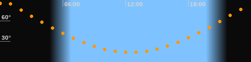 | Höchster Stand (Kulmination) | 00:24 Uhr (h = 87,4°) |