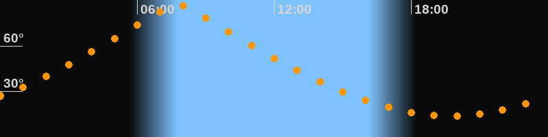 | Höchster Stand (Kulmination) | 07:45 Uhr (h = 87,4°) |