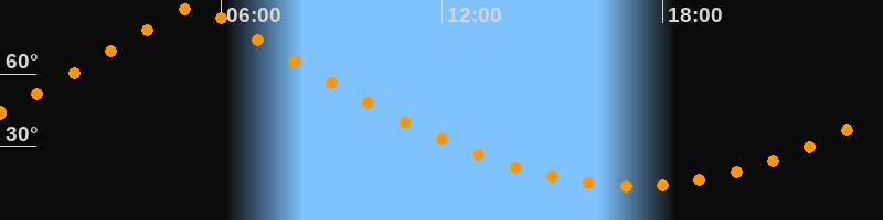 | Höchster Stand (Kulmination) | 05:15 Uhr (h = 87,4°) |