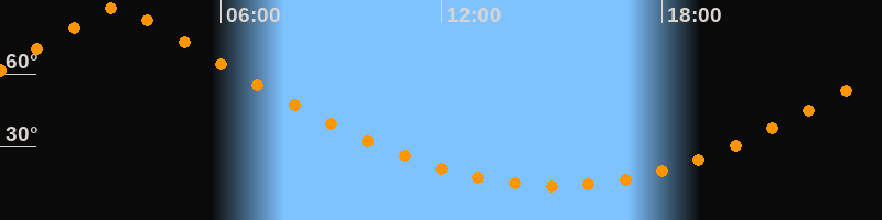 | Höchster Stand (Kulmination) | 03:09 Uhr (h = 87,4°) |