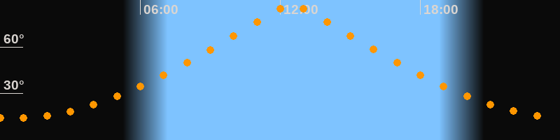 | Höchster Stand (Kulmination) | 12:30 Uhr (h = 87,4°) |