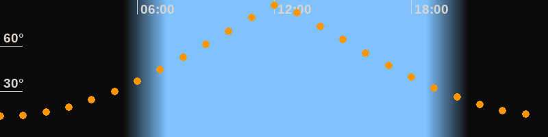 | Höchster Stand (Kulmination) | 12:10 Uhr (h = 87,4°) |