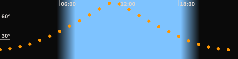 | Höchster Stand (Kulmination) | 11:27 Uhr (h = 87,4°) |