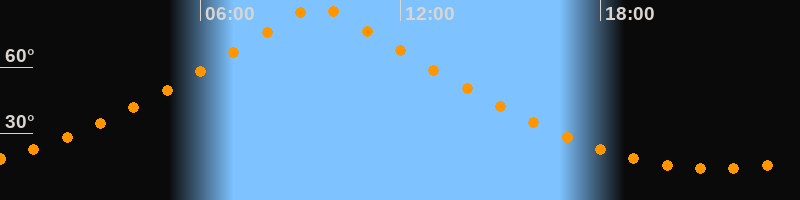 | Höchster Stand (Kulmination) | 09:32 Uhr (h = 87,4°) |