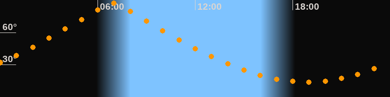 | Höchster Stand (Kulmination) | 06:54 Uhr (h = 87,4°) |