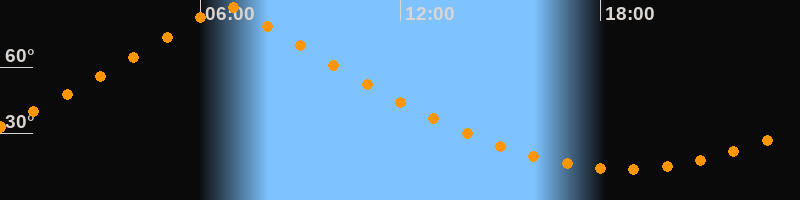 | Höchster Stand (Kulmination) | 06:47 Uhr (h = 87,4°) |