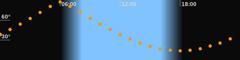 | Höchster Stand (Kulmination) | 05:59 Uhr (h = 87,4°) |