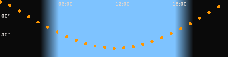 | Höchster Stand (Kulmination) | 00:06 Uhr (h = 87,4°) |
