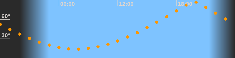 | Höchster Stand (Kulmination) | 19:47 Uhr (h = 87,4°) |