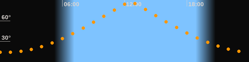 | Höchster Stand (Kulmination) | 12:33 Uhr (h = 87,4°) |