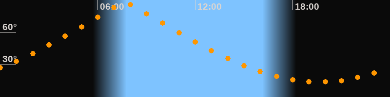| Höchster Stand (Kulmination) | 07:41 Uhr (h = 87,4°) |
