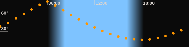 | Höchster Stand (Kulmination) | 05:54 Uhr (h = 87,4°) |