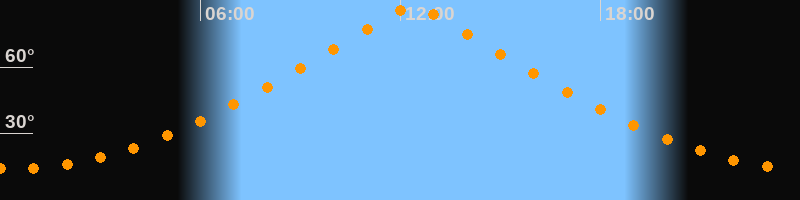 | Höchster Stand (Kulmination) | 12:22 Uhr (h = 87,4°) |