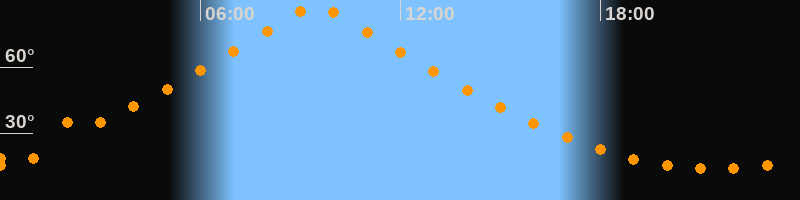 | Höchster Stand (Kulmination) | 09:28 Uhr (h = 87,4°) |
