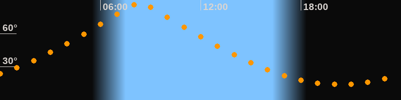 | Höchster Stand (Kulmination) | 08:21 Uhr (h = 87,4°) |