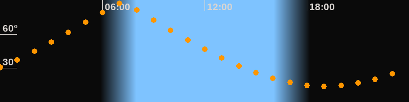 | Höchster Stand (Kulmination) | 07:06 Uhr (h = 87,4°) |